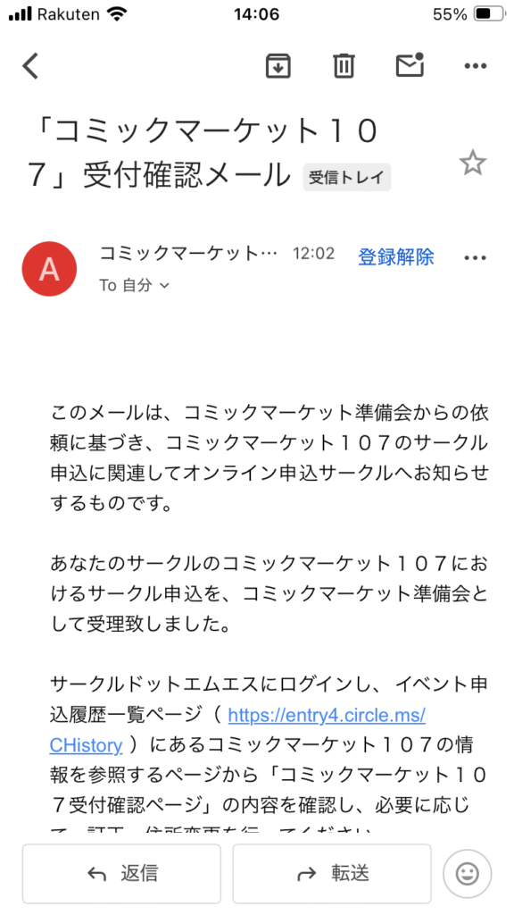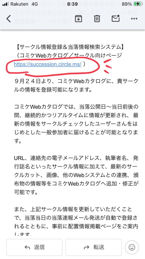 受付確認メールからCircle.ms(コミケWebカタログサークル側)へ